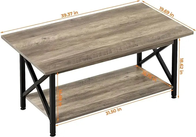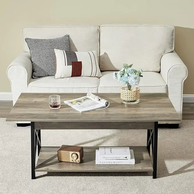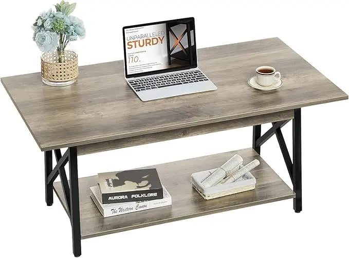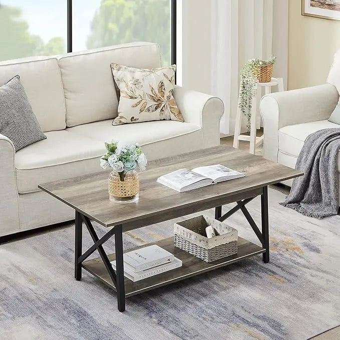 GreenForest Coffee Table with Storage, 39inch Modern Coffee Tables for Living Room, X-Frame Design Farmhouse Coffee Table Space Saving Living Room Tables, Easy Assembly, Grey Wash