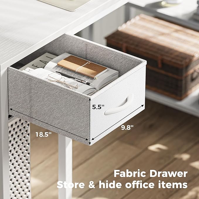 SUPERJARE 53 inch Reversible L Shaped Desk with LED Lights & Power Outlets, Computer Desk with Shelves & Monitor Stand, Gaming Desk with Drawer, Home Office Desk Corner Desk, PU White Drawer