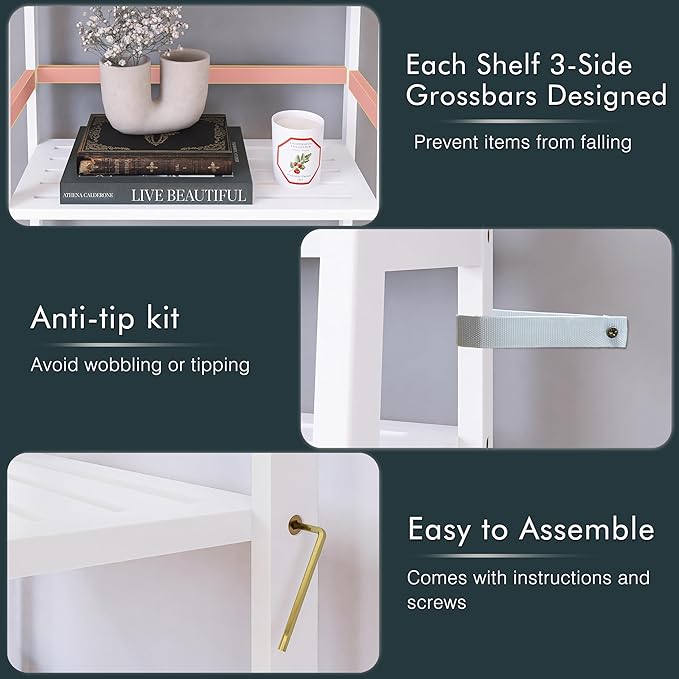 About This AMPLE EXTENDED STORAGE SPACE - 4 open boards gradually deepen from top to bottom, allowing daily items of...