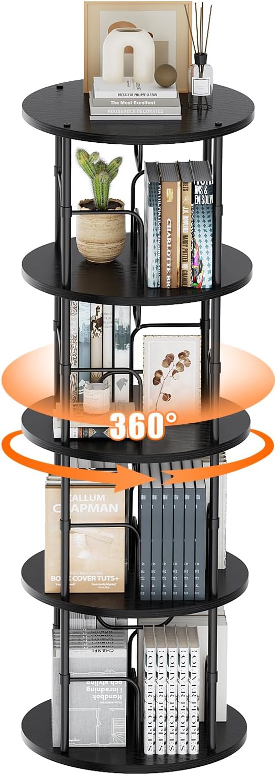 About This 📚【Smooth 360° Rotating Bookshelf】:Allstand tall spinning bookshelf is equipped with a turnplate on the bottom,can rotate 360 degrees...