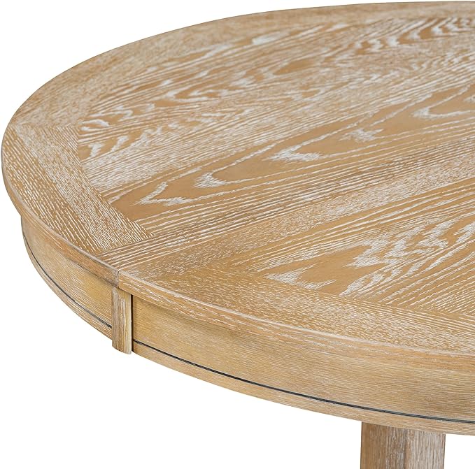 5-Piece Round Extendable Dining Set, Farmhouse Table and 4 Upholstered Chairs for Home Kitchen, 3, Natural Wood Wash 3