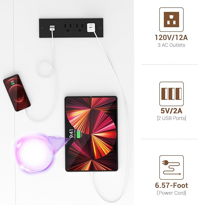 About This Desk with USB Charging Station & Power Outlets - Armocity computer desk comes with 3 outlets and 2...