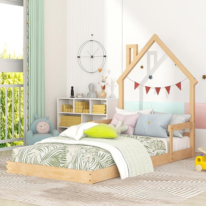 About This 🏡【House-shaped Headboard Floor bed】Want to decorate your kid's room that he/she will not forget in their adult age.Go...