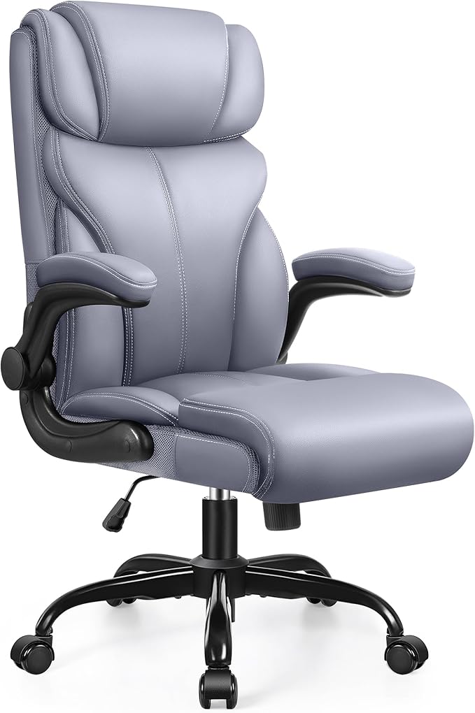 Office Chair, Ergonomic Big and Tall Computer Desk Chairs, Executive Breathable Leather Chair with Adjustable High Back Flip-up Armrests, Lumbar Support Swivel PC Chair with Rocking Function