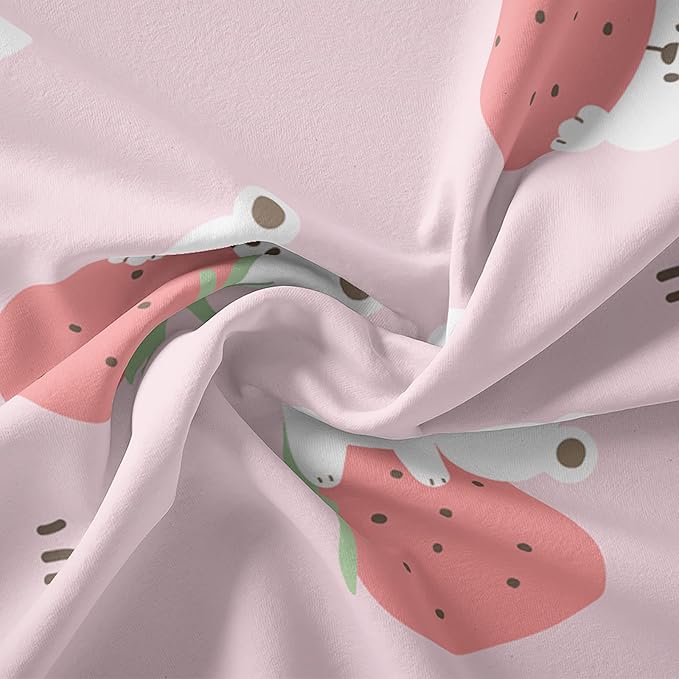 Cartoon Bear Comforter King Size,Pink Strawberry Comforter Set for Kids Teens Girls,3Pcs Bedding Set Printed Comforter with 2 Pillowcases,Down Alternative,Soft and Lightweight,King Size