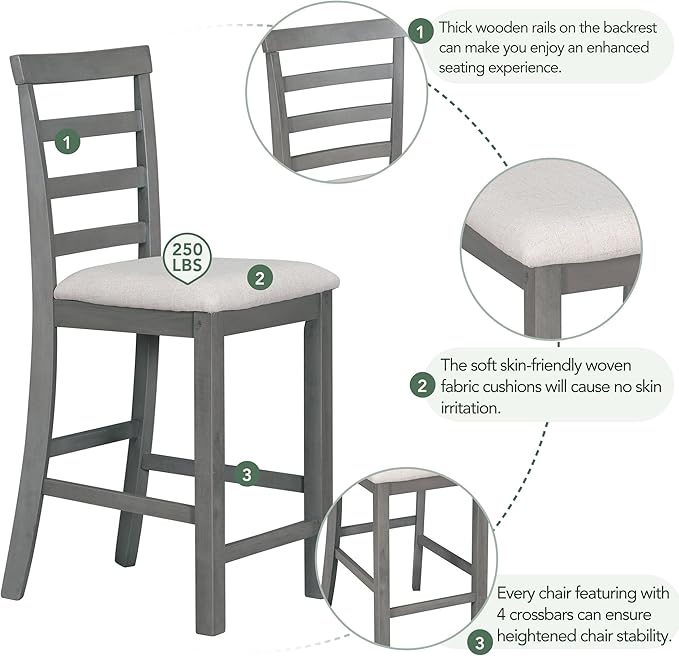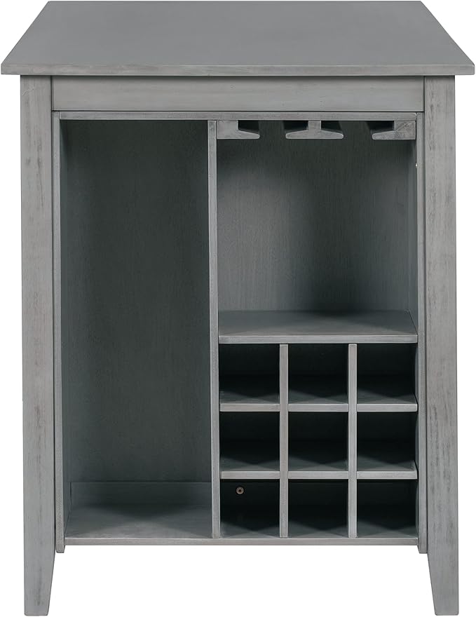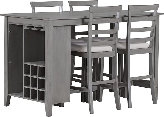 5-Piece Wood Counter Height Dining Table Set with Integrated 9 Bar Wine Compartment and Wineglass Holders, 4 Upholstered Chairs, Functional Side Storage, Gray 2