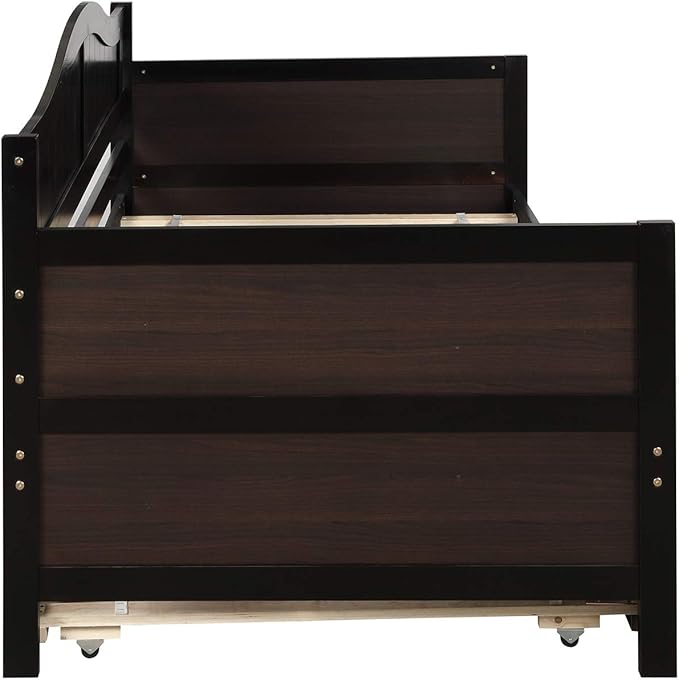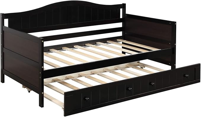 Twin Size Wooden Daybed, with Trundle and Wood Slat Support, Traditional Lodge Beadboard Design & Classic Arch Profile, Suitable for Children's Room, Guest-Room, Living-Room