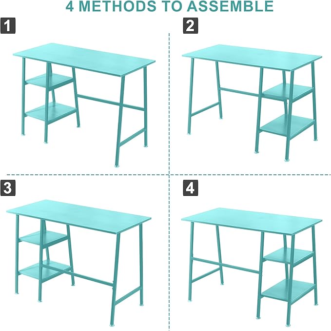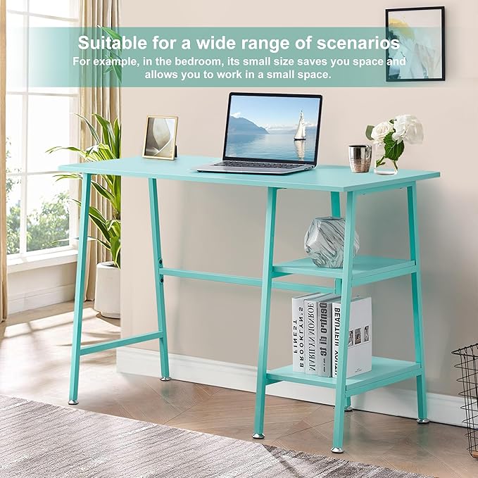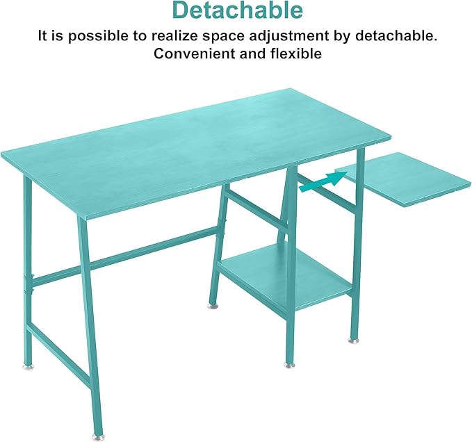 VECELO 43 Inch Home Office Computer Easy to Assemble Simple Table Modern Student Study Desk,Water Proof, Blue+black leg