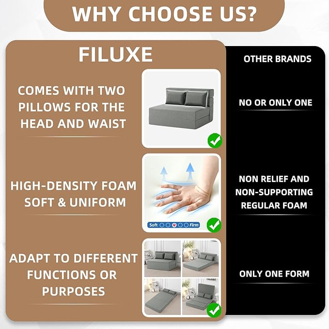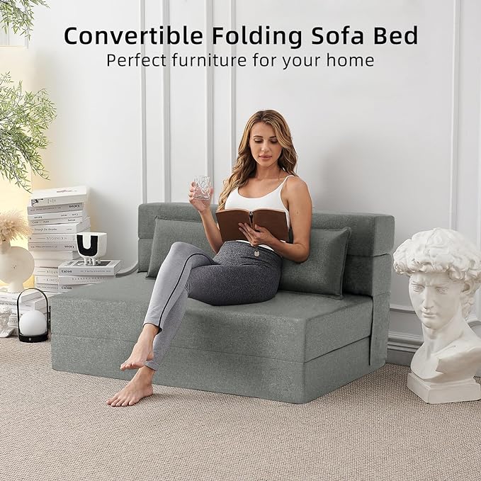 About This 【Premium Fabric & Foam】This foldable sleeper sofa features High-Density foam, is soft and uniform, rebounds quickly, and is...