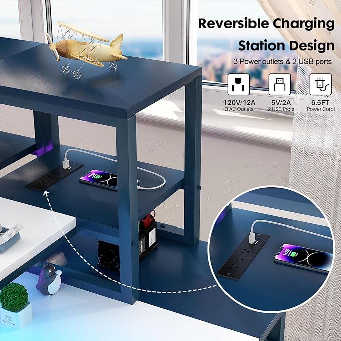 39.4'' Gaming Desk with LED and Storage Shelves, 39 Computer Desk with Long Monitor Stand, Small Desk for Small Space, Simple Study Student Writing Desk, Laptop Table for Home Office, White