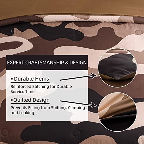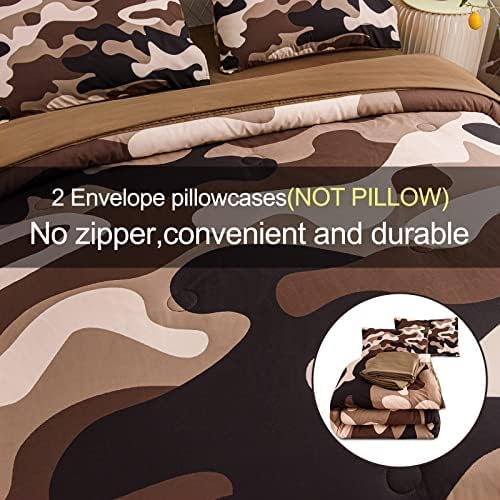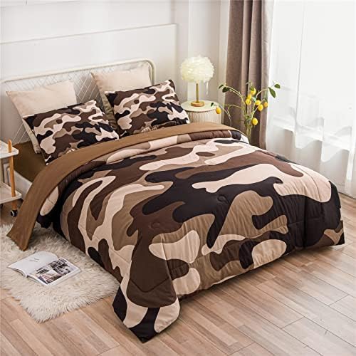 Meeting Story Camouflage Bedding Set, Colorful Pattern Style Comforter Set, 5 PCS One Comforter Two Pillowcases Two Sheets in One Bag, All Season Bedspread for Teens Adults (Coffee, Queen 5Pcs