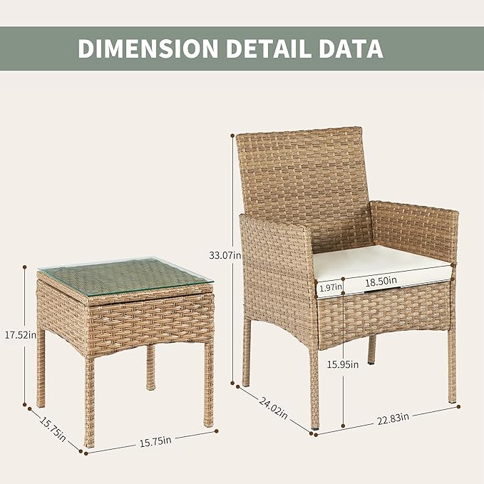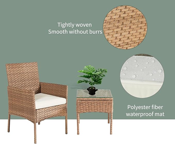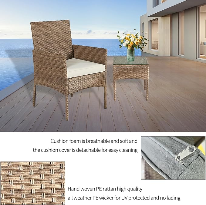 3 Pieces Patio Set Balcony Furniture Sets for Apartments.Bistro Furniture Set, Conversation Sets with Coffee Table, for Porch, Patio, Garden and Removable Cushions Beige
