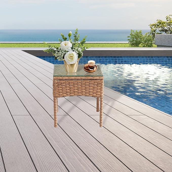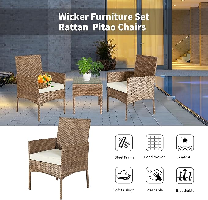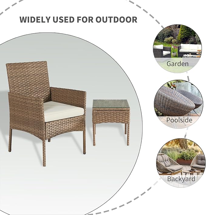 About This Easy & Quick Assemble: VSMKSJ 3 Pieces of patio furniture set including 2 rattan chairs and 1 tempered...