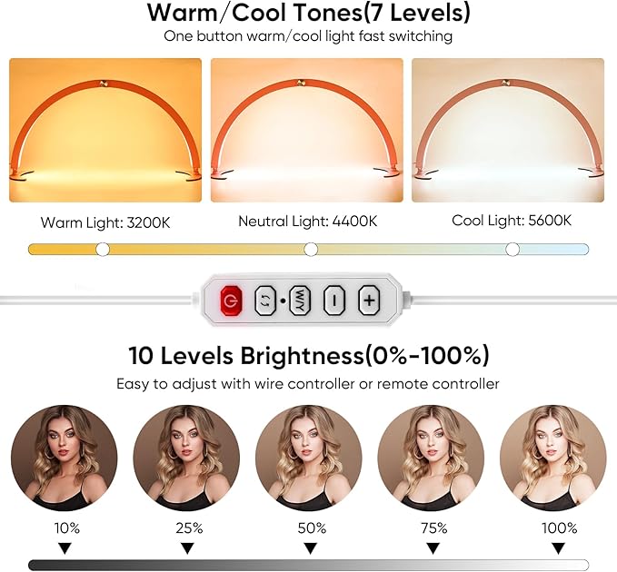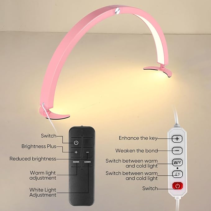 29in Half Moon Light for Nail Desk,40W Half Moon Nail Lamp for Desk,Led Nail Tech Lamp with Wire Controller & Remote,Table Lamp for Nails,Tattoo,Eyebrows, 7 Cool/Warm Tones & 10 Brightness