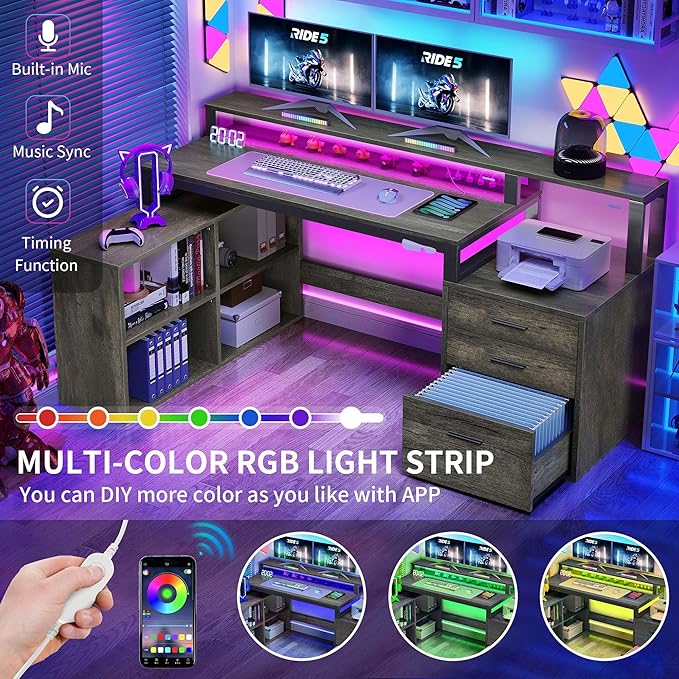About This Cool LED Light Strips: Our L-shaped desk features a beautiful RGB LED light strip, flexibly controlled by a...