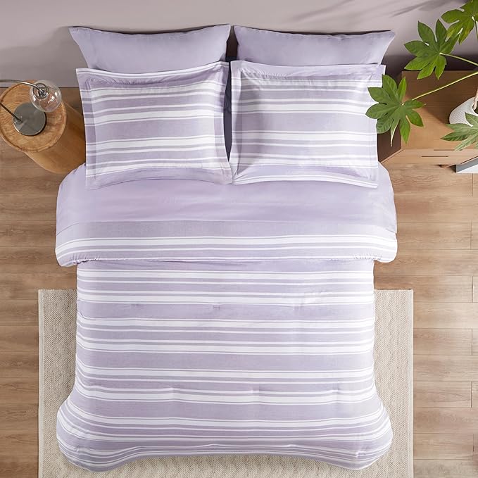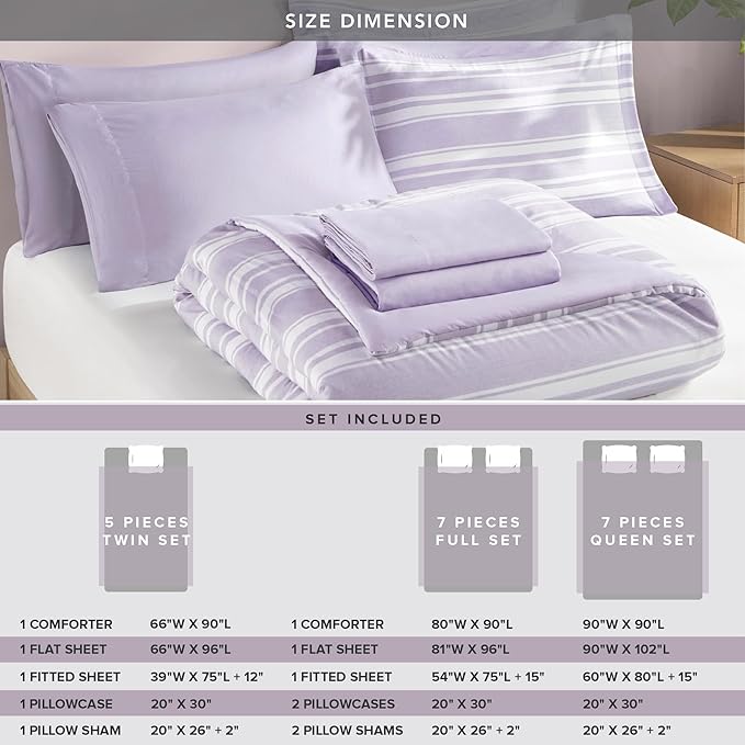 Codi Lavender Purple Queen Comforter Set with Sheets, Striped Bed in a Bag Reversible for All Seasons, Cationic Dyeing Bedding Sets with Comforter, Sheets, Pillowcases & Shams
