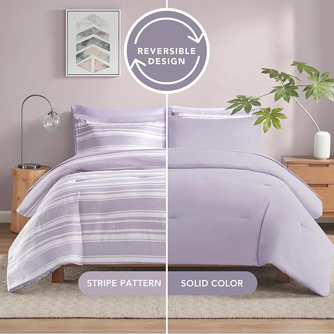 Codi Lavender Purple Queen Comforter Set with Sheets, Striped Bed in a Bag Reversible for All Seasons, Cationic Dyeing Bedding Sets with Comforter, Sheets, Pillowcases & Shams