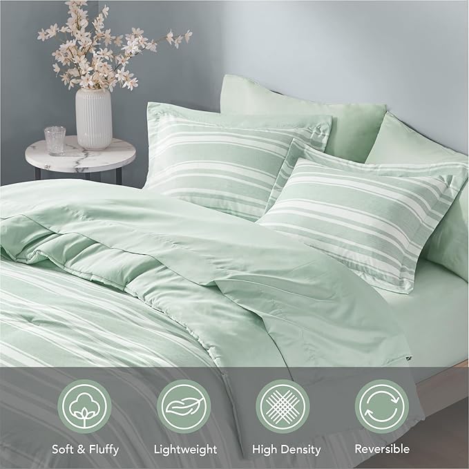 Codi Full Size Comforter Set with Sheets, Sage Green Bed in a Bag for Teen, 7 Piece Striped Bed Sets for All Seasons with 1 Comforter, 2 Pillow Shams, Flat Sheet, Fitted Sheet and 2 Pillowcases