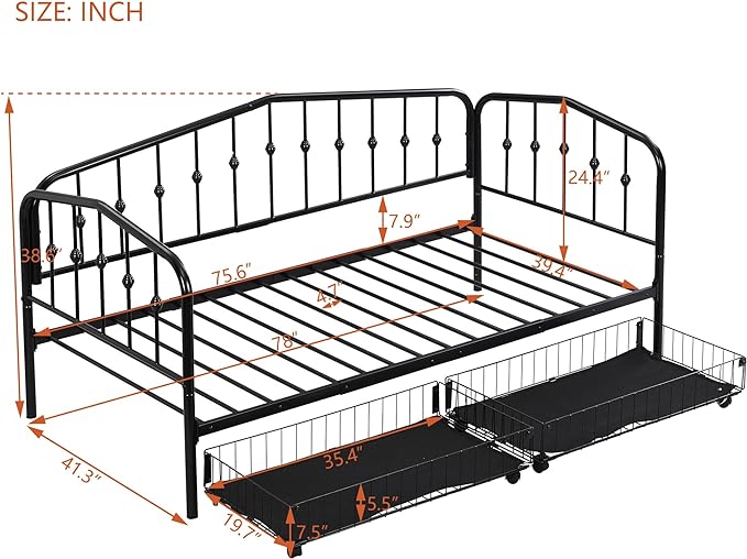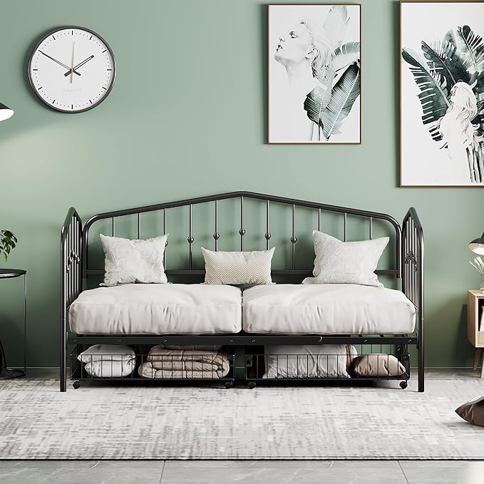 About This Iron [Space-saving]The daybed with 2 big drawers can easily be pulled in and out for maximum storage space,...