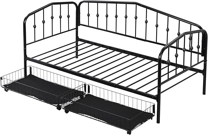 Twin Size Stylish Metal Daybed with 2 Drawers,Easy Assembly,Sofa Bed for Bedroom Living Guest-Room Apartment,Black