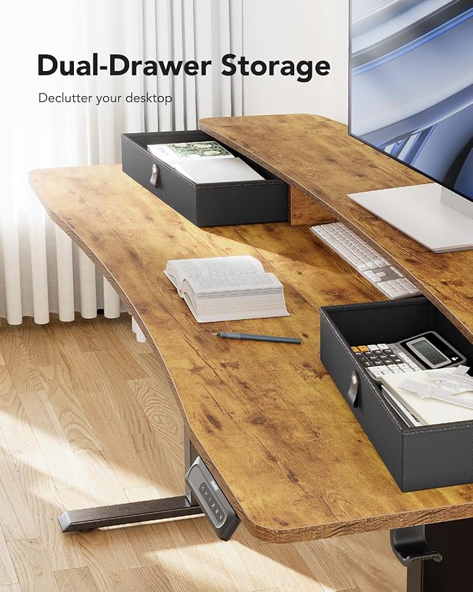 About This Efficient Desktop Organization: The electric standing desk maximizes organization with two desktop drawers to store items out of...