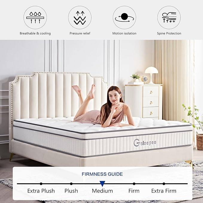 Full Mattress, 12 Inch Size Gel Memory Foam Mattress, Individually Inner Spring Hybrid Mattresses, Medium Firm colchones in a Box, Pressure Relief
