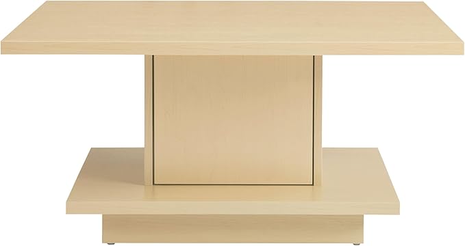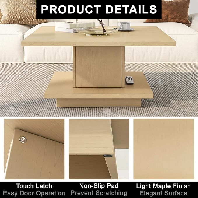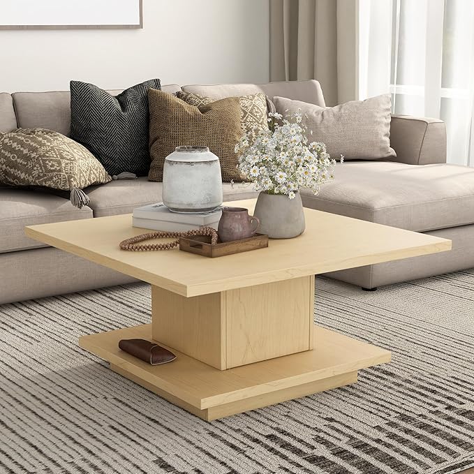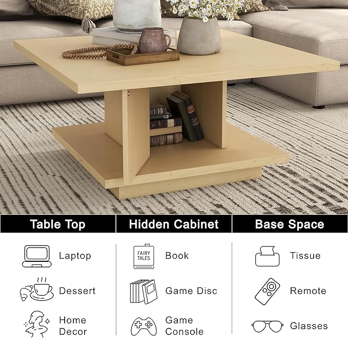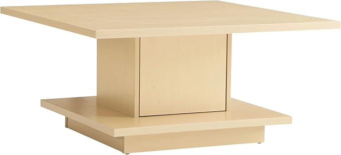 24/7 Shop at Home Lukas 31 inch Square Coffee Table with Hidden Storage and Base Shelf, Contemporary Furniture for Living Room, Home Office, Apartment, Small Space, Light Maple