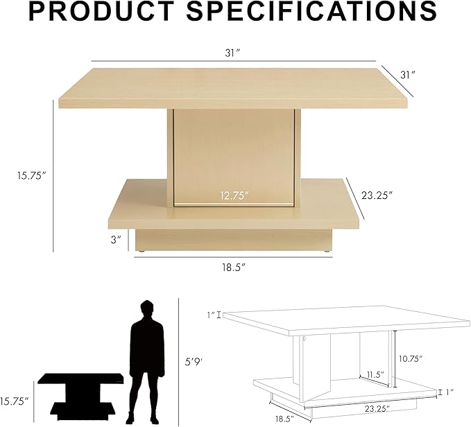 About This ๐ณ STURDY BUILD: This square coffee table is crafted from durable MDF, designed for longevity and capable of...