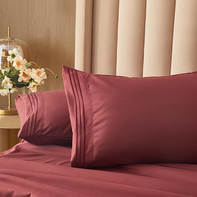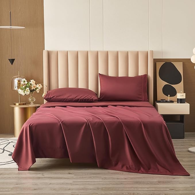 Bed Sheet Set - Brushed Microfiber Bedding - Bedding Sheets & Pillowcases - Deep Pockets - Easy Fit - Breathable & Soft Hotel Sheets - 4 Piece Queen Burgundy