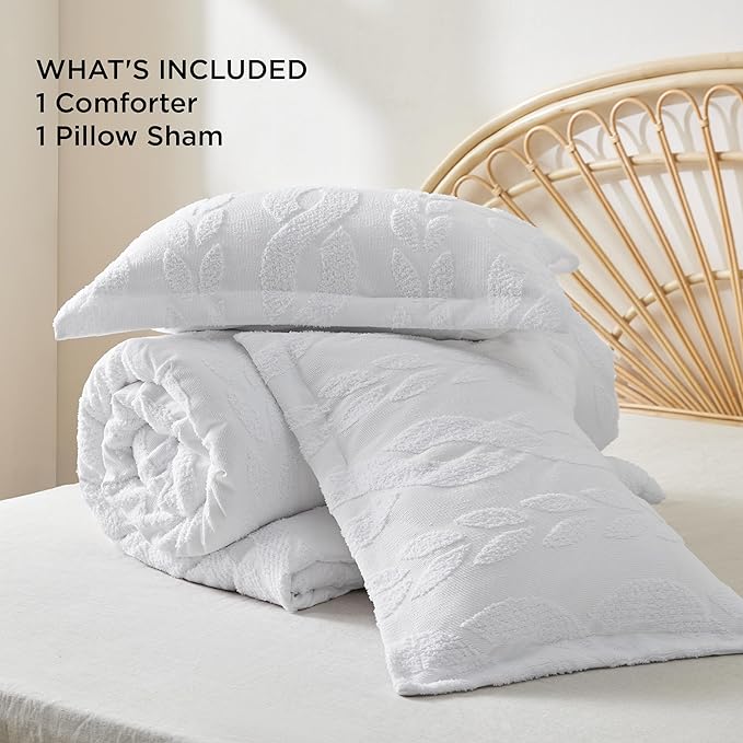 Bedsure Full Size Comforter Set White, Boho Tufted Bedding Comforter Set, Farmhouse Jacquard Cable Knit Pattern Bed Set, 3 Pieces, 1 Shabby Chic Fluffy Comforter & 2 Pillow Shams