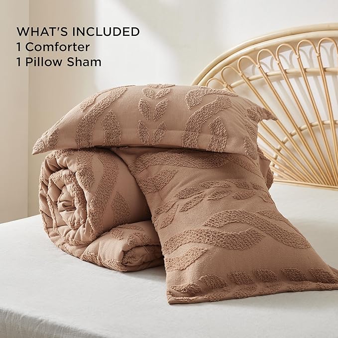 Bedsure Twin/Twin XL Size Comforter Set Taupe, Boho Tufted Bedding Comforter Set, Farmhouse Jacquard Cable Knit Pattern Bed Set, 2 Pieces, 1 Shabby Chic Fluffy Comforter & 1 Pillow Sham