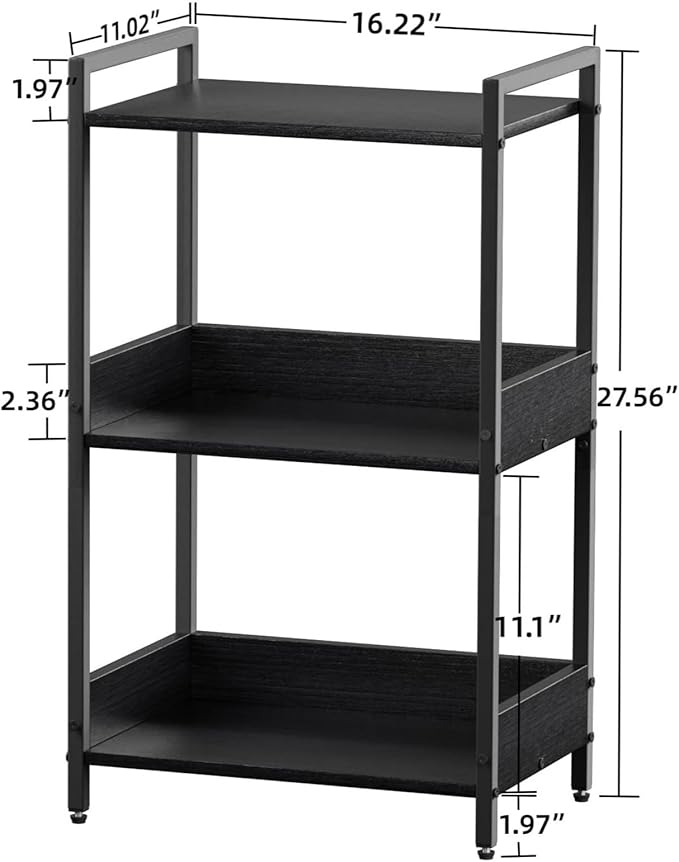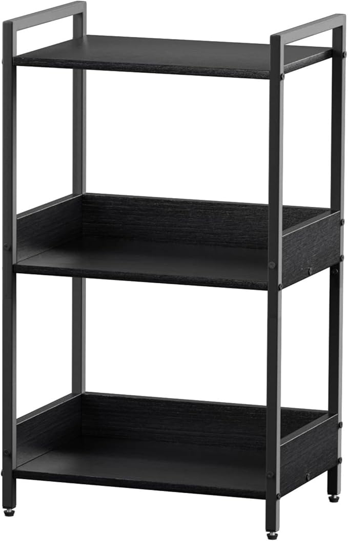 Bookshelf, 3 Tier Industrial Small Book Shelf, Small Storage Bookcase with Organizer, Freestanding Open Shelf for Small Spaces, Bedroom, Living Room Black BS70BS