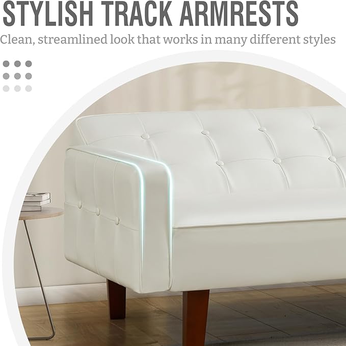 IULULU Futon Sofa Bed, Modern Convertible Faux Leather Sleeper Couch with Armrests for Studio, Office, Apartment, Compact Living, Game Room, Overnight Guests, Retro White