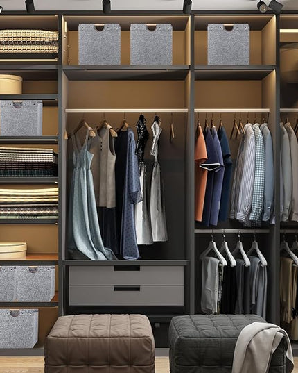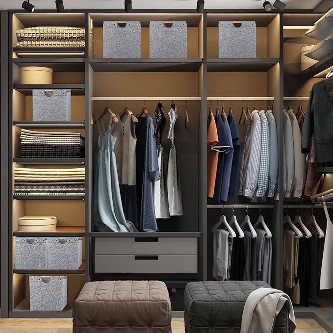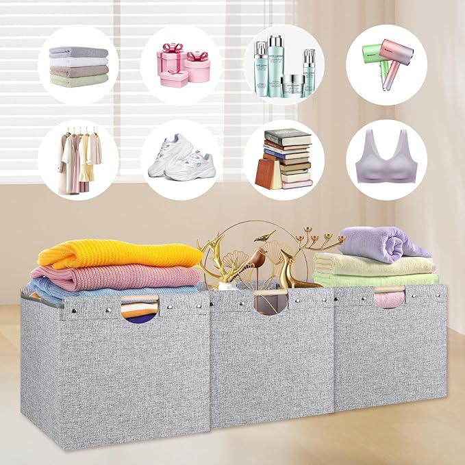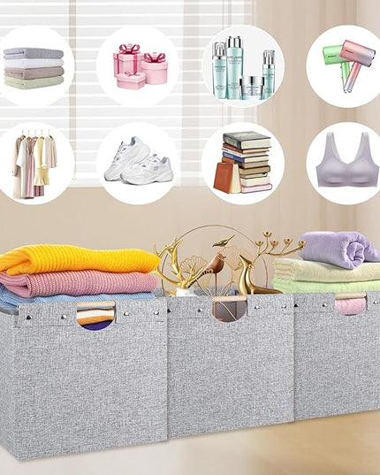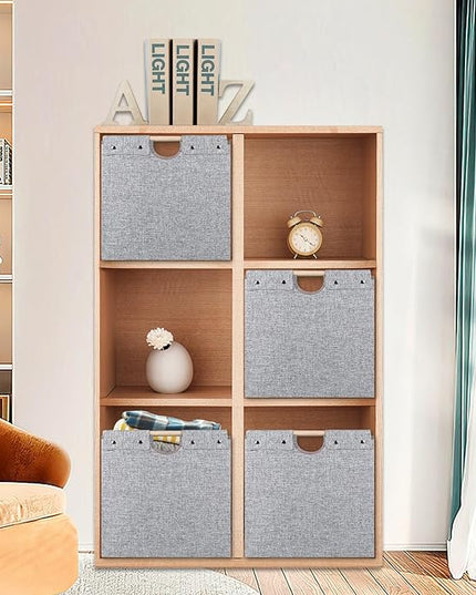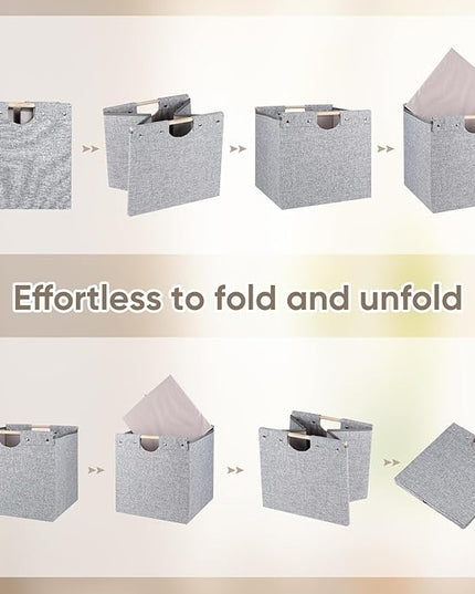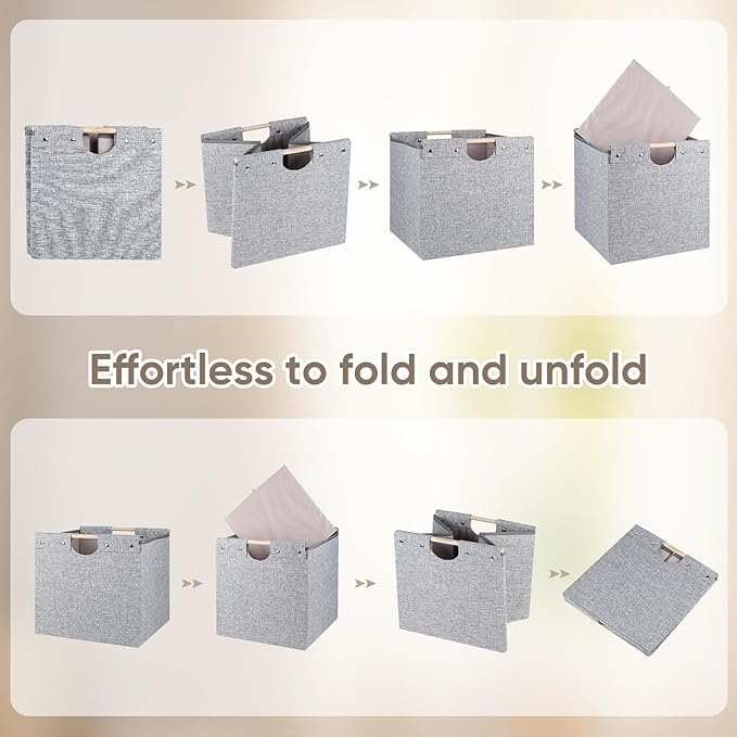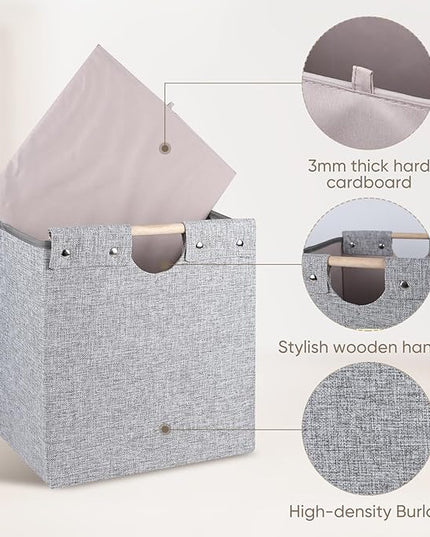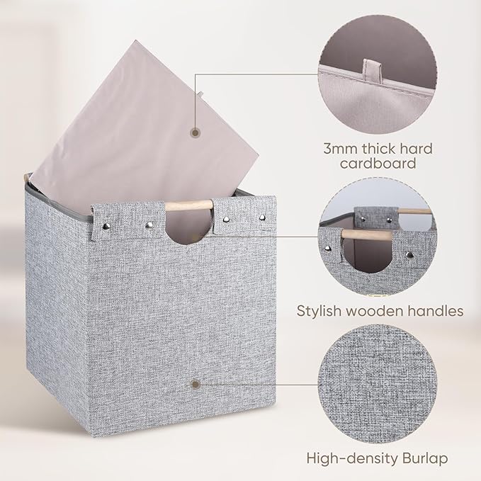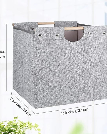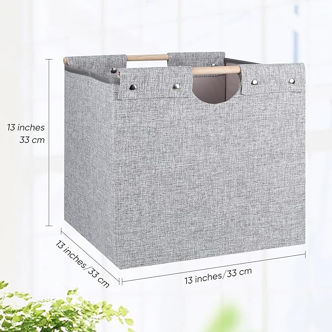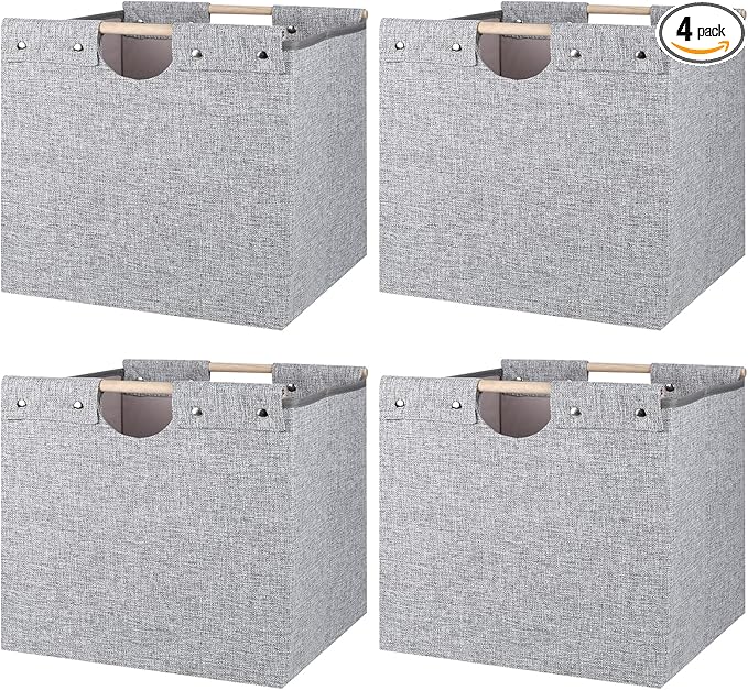 13x13x13 Inches Collapsible Storage Cubes, 4 Pack Fabric Bins with Wooden Handles for Kallax Shelves, Closet, Cabinet, Bookcase, Home Organizer Boxes for Decor and Laundry (Gray)