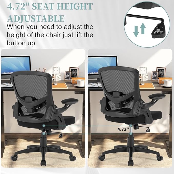 Ergonomic Mesh Office Chair, Comfy Desk Chair with Flip up Armrests, Swivel Computer Desk Chair with Adjustable Lumbar Support and Height for Home Office, 300 lbs Capacity