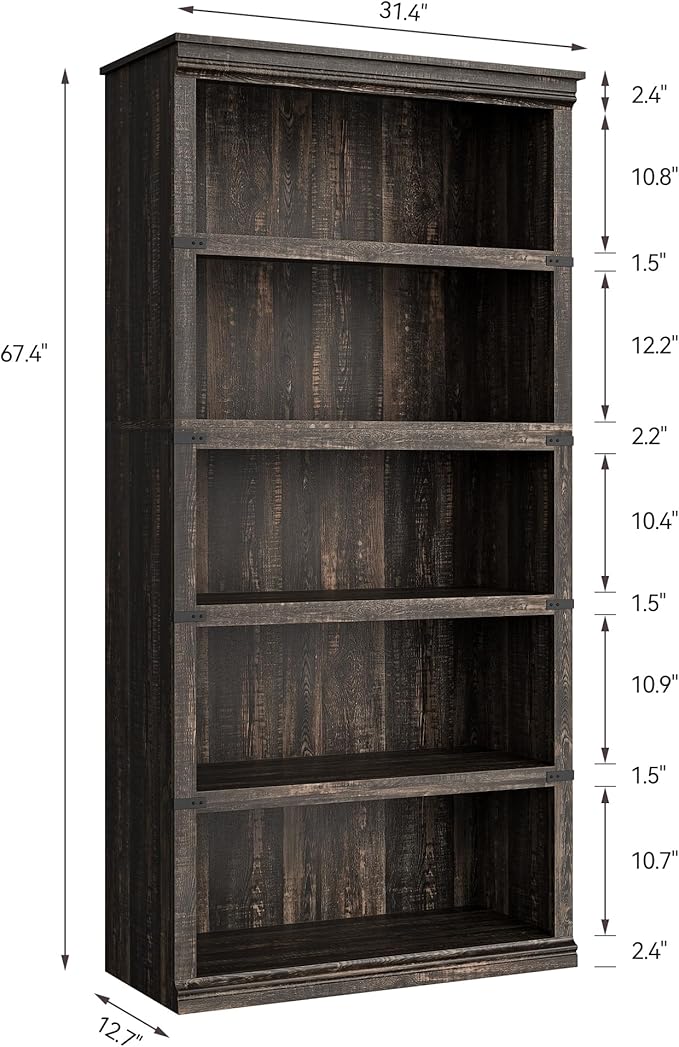 GAOMON 5 Tier Bookcase, Farmhouse Book shelf with Storage Open Display Bookshelves, 67.4" Tall Book Case Wooden 5 Shelf Bookcase Home Decor Furniture for Home Office, Living Room, Bed Room - Oak
