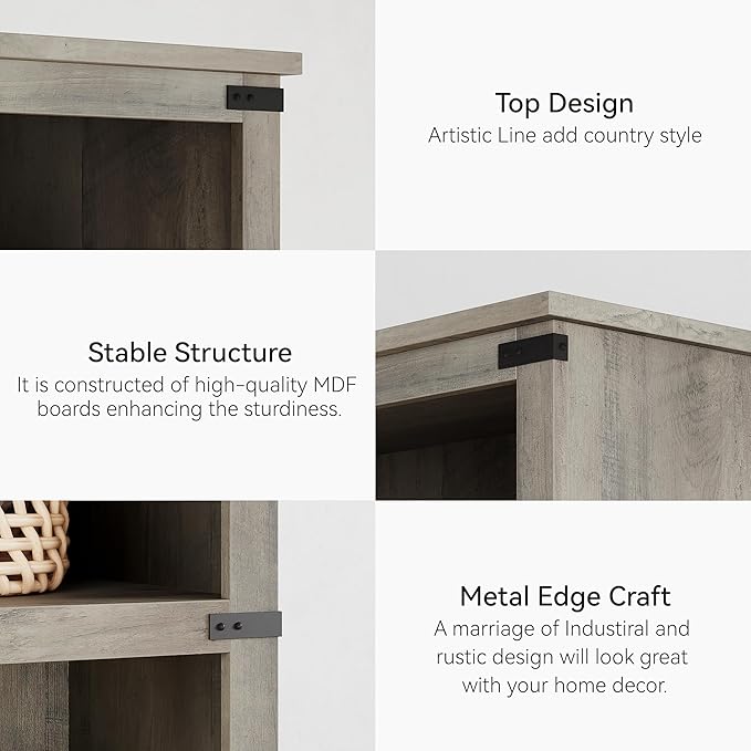 GAOMON 3 Tier Bookcase, Farmhouse Book shelf with Storage Open Display Bookshelves, 40" Low Book Case Wooden 3 Shelf Bookcase Home Decor Furniture for Home Office, Living Room, Bed Room - Grey