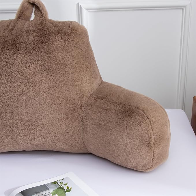 Aimuan Reading Pillow Bed Rest Wedge Large Adult Backrest Pillow with Arms Back Support for Sitting Up in Bed Cushion Incline Rest Sleeping Snoring Pillow,Brown Large