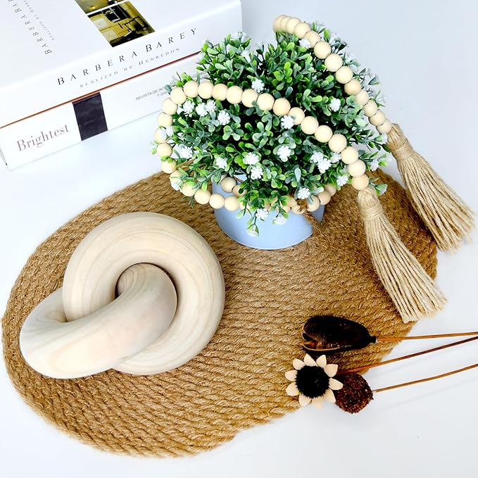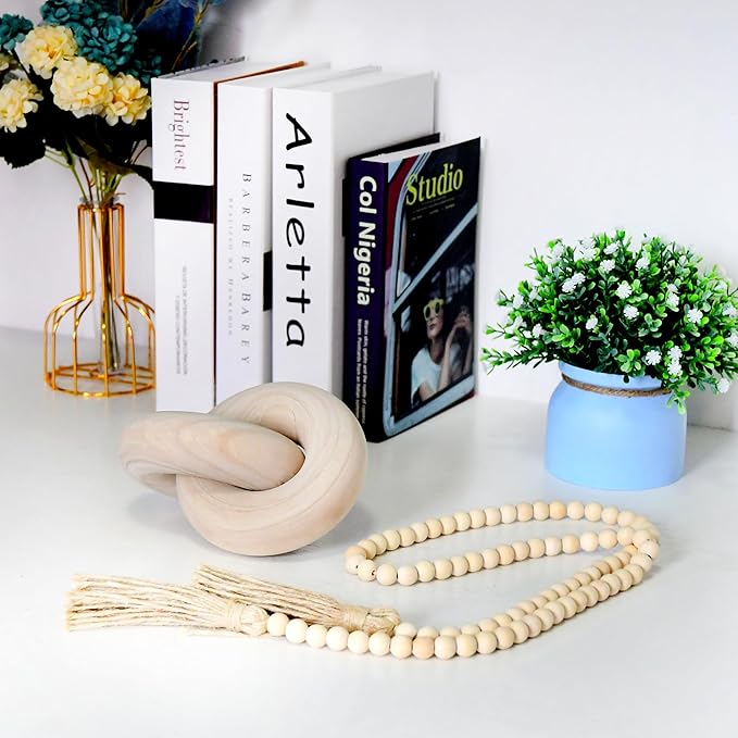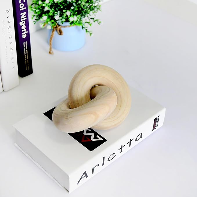 Wood kont Decor Coffee Table Decor for Living Room, Wood Chain Link Decor, Hand Carved Decoration for Home, Modern Farmhouse, Boho and Shelf Object