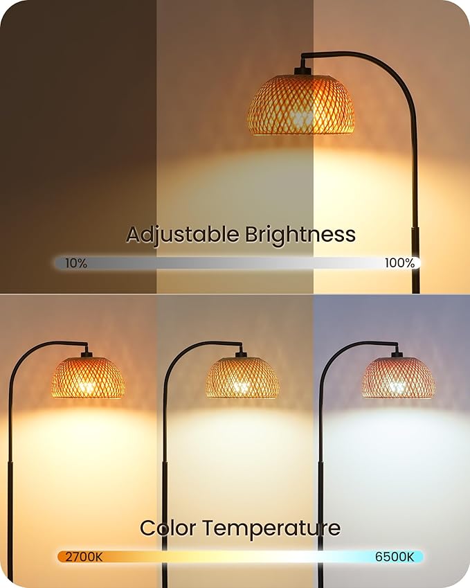 About This Adjustable Brightness and Color Temperature: The floor lamp has a 10W LED bulb with adjustable brightness (10%-100%) and...