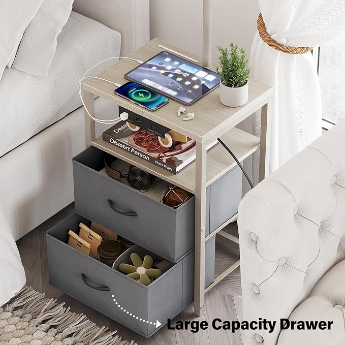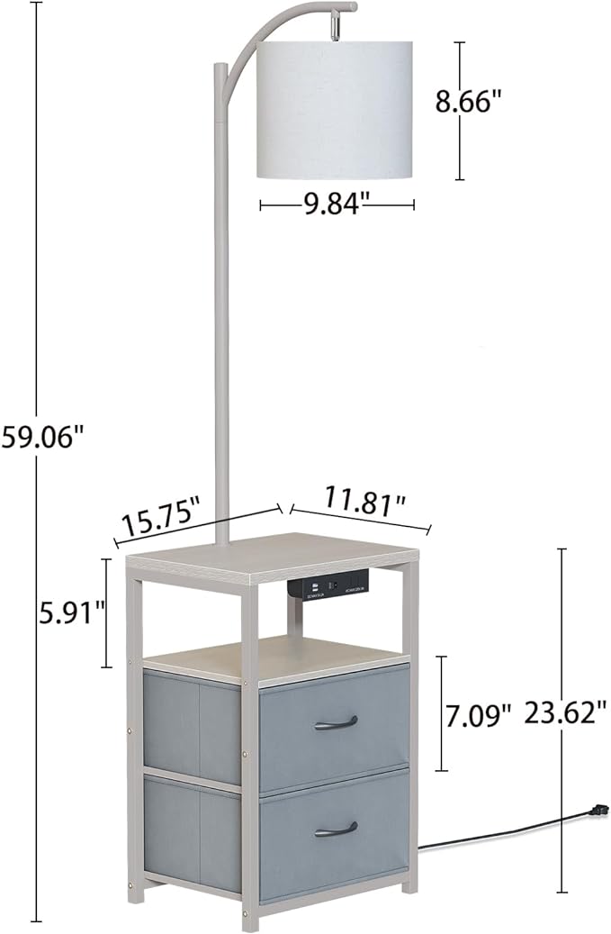 SUNMORY Floor Lamp with Table & 2 Drawers, Lamp with USB Port and Outlet, Lamps for Nightstand with 3 Color Temperature Led Bulb Included, Floor Lamps for Living Room, Bedroom and Home Office, Grey