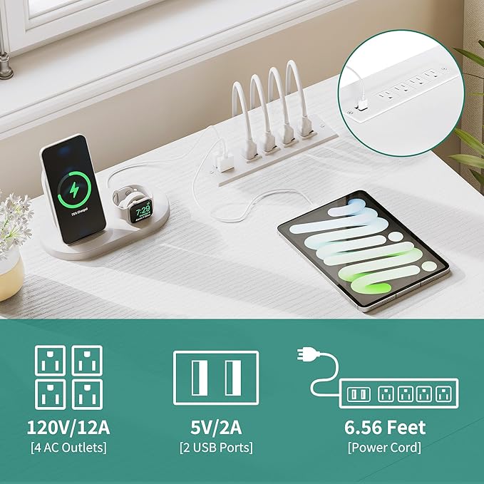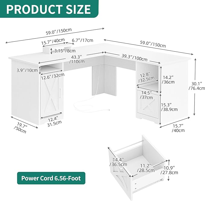 About This Convenient Charging Station: YITAHOME L shaped desk with drawers features 2 USB ports, 4 power outlets & a...