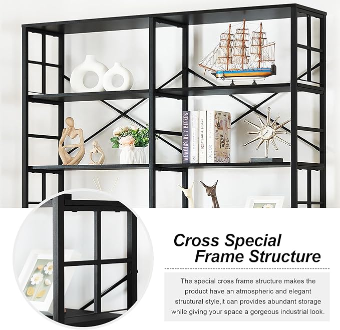 HOMISSUE Tall Bookshelf, 84" Bookshelves and Bookcases Double Wide 7-Tier Bookshelf, Tall Bookcase Wood Style and Metal Open Display Shelves for Living Room Home Office