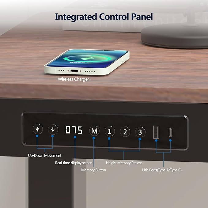 About This Innovative Wireless Charging: Embrace a clutter-free workspace with the EJEMHOMU Sit Stand Desk featuring wireless charging technology. The...