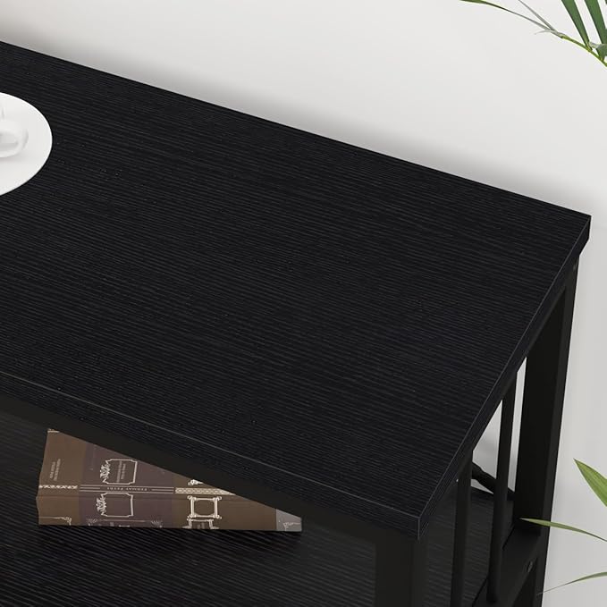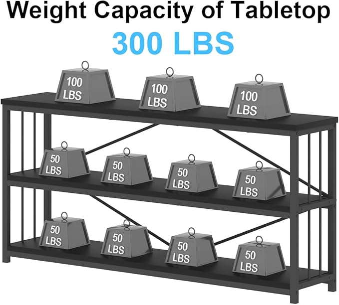 IBF 63" Black Low Horizontal Bookcase, Modern Long Wood Metal 3 Tier Book Shelf, Farmhouse Vintage Big open sturdy Bookshelf, Simple Large Wide Etagere for home living room office bedroom, Black Oak