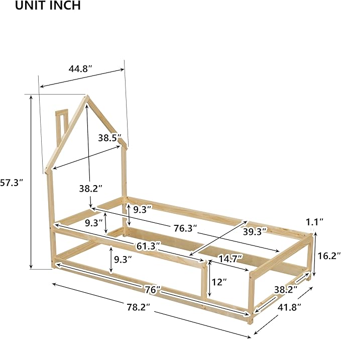 About This 🏡【House-shaped Headboard Floor bed】Want to decorate your kid's room that he/she will not forget in their adult age.Go...
