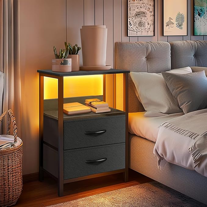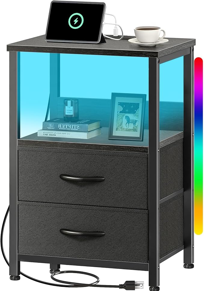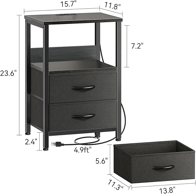 About This 【Nightstand with Charging Station】Our bedside table comes with 2 USB ports and 2 AC outlets, making it a...