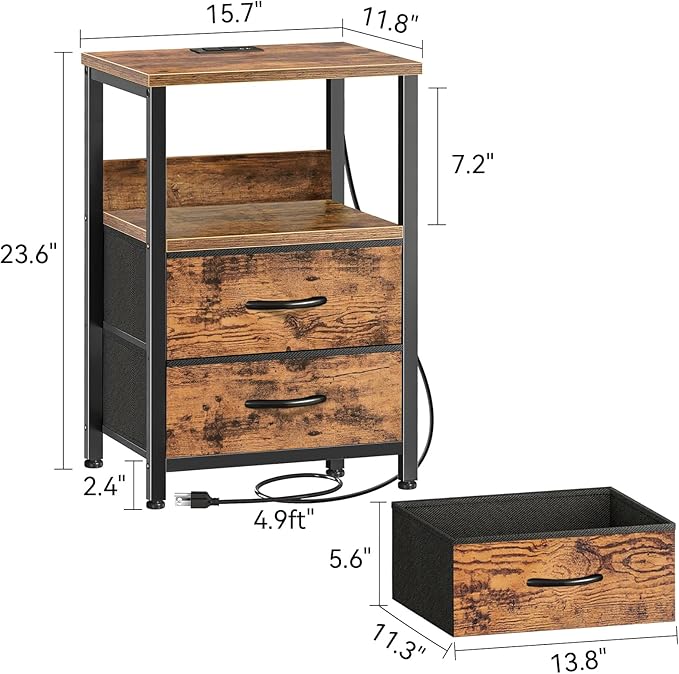 About This 【Nightstand with Charging Station】Our bedside table comes with 2 USB ports and 2 AC outlets, making it a...