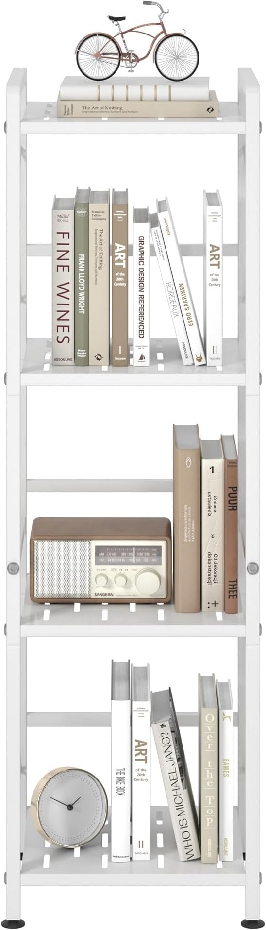 JSB 4 Tier Metal Bookshelf Bathroom Storage Standing Shelf Unit Kitchen Storage Organizer Display Rack Bookcases Shelves for Living Room, Bedroom, Office (White, 4 Tier)