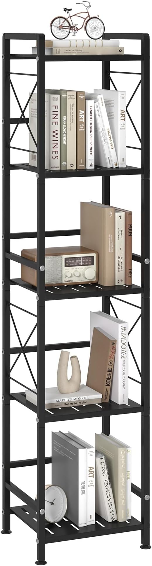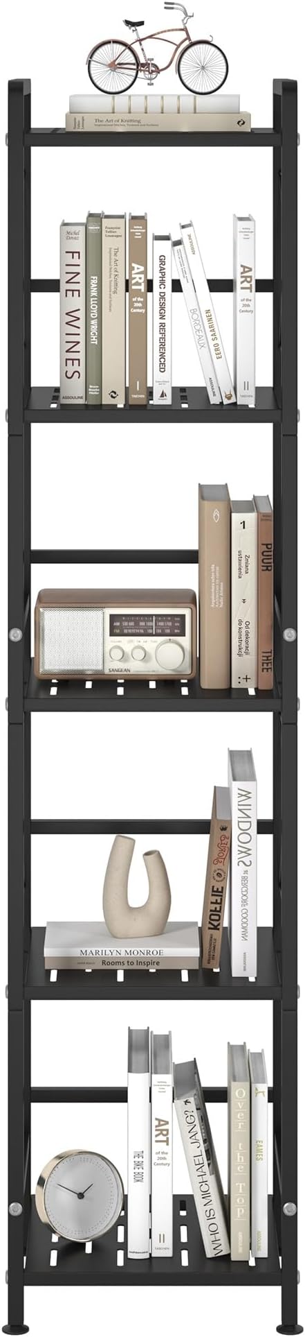 JSB 5 Tier Metal Bookshelf Bathroom Storage Standing Shelf Unit Kitchen Storage Organizer Display Rack Bookcases Shelves for Living Room, Bedroom, Office (Black, 5 Tier)